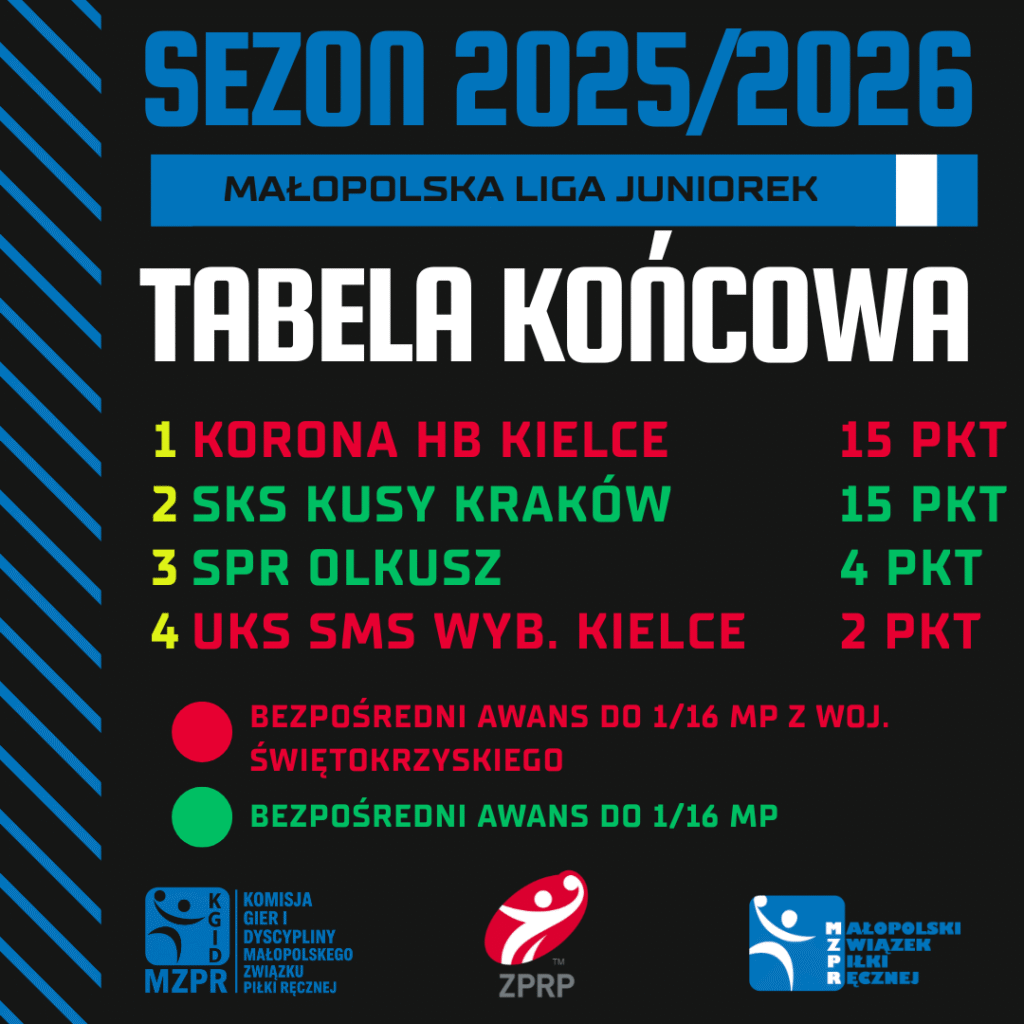 Warto podkreślić, że Małopolska Liga Juniorek jako pierwsza ze wszystkich żeńskich lig w Małopolsce zakończyła swoje rozgrywki. Jak co sezon, juniorki kończą rywalizację wcześniej, aby móc szybciej przystąpić do rozgrywek centralnych – Mistrzostw Polski, a także pogodzić sport z edukacją i przygotowaniami do matury.